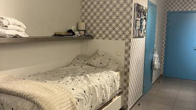 Ruim kot met privé badkamer. De meubels kunnen overgekocht worden (bureau, bureaustoel, zetel, tapijt, ijskast en microgolfoven is al aanwez...