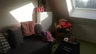 Het is een "kot" in een studentenhuis op de bovenverdieping, met aparte keuken, eigen douche, leefruimte/bureau en afgescheiden slaapruimte ...