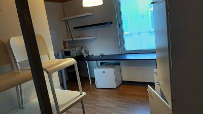 Het is een "kot" in een studentenhuis op de bovenverdieping, met aparte keuken, eigen douche, leefruimte/bureau en afgescheiden slaapruimte ...