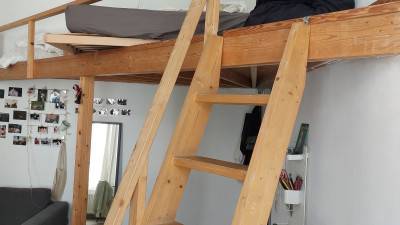 Het studentenhuis ligt in hartje Gent vlakbij de Korenmarkt en Luca School of Arts. Er zijn 8 kamers en 7 studio's in het gebouw. De kamers delen een gemeenschappelijke keuken, 2 douches en 2 toiletten. Er is een fietsstalling aanwezig in de binnentuin waar het ook heerlijk vertoeven is in de zomer. Deze kamer ligt aan de achterzijde van het gebouw op de 1ste verdieping. De kamer heeft een oppervlakte van 20.5 m² met een mezzanine slaapplaats. Er is een lavabo aanwezig en heeft ook een balkon met uitzicht op de binnenplaats. Bezichtiging kan op afspraak