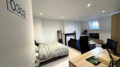 Recente studentenstudio; bemeubeld en met eigen sanitair (WC/douche/lavabo) en kitchenette. De studio ligt aan de achterkant en heeft een p...