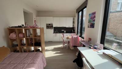 Nieuwbouw studio (2022) van 27m2. Deze studio op het gelijkvloers is perfect voor 2 personen. Domicilie mogelijk.