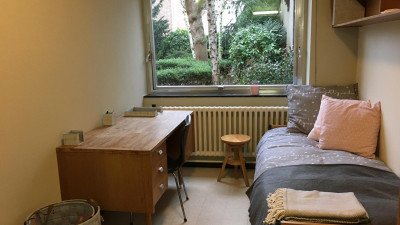 Bemeubelde studentenkamer van 15m². Extra goede isolatie voor geluiden van buiten. Er rijden geen bussen in de straat, maar de bushalt...